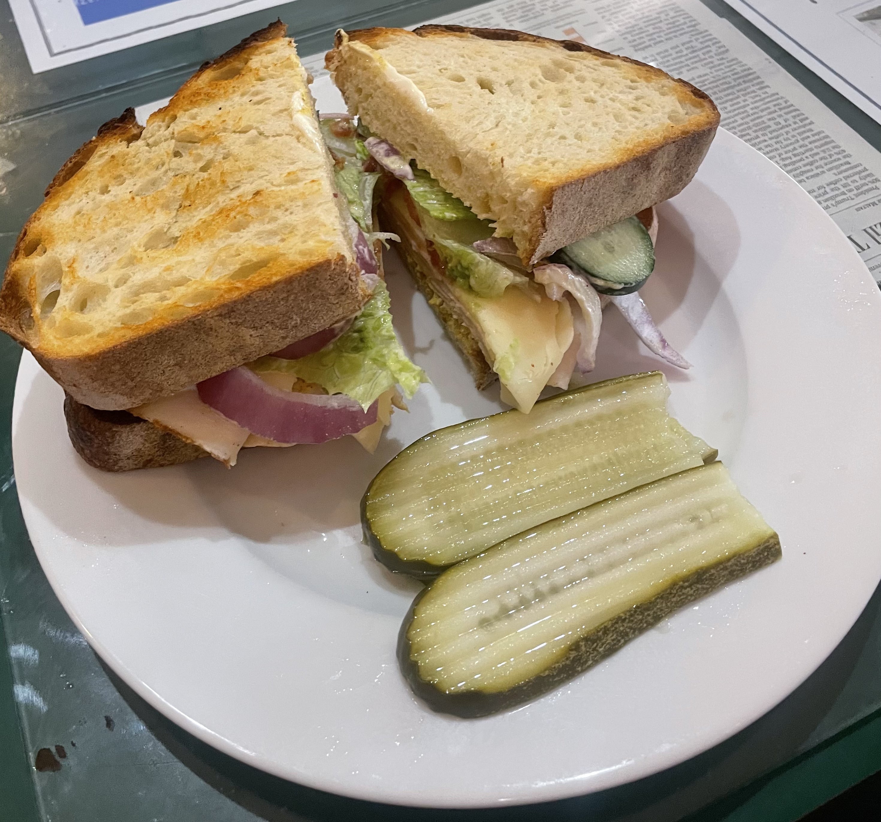 Turkey, bacon, lettuce, avocado, cheese, artisan bread, tomato and special dressing.